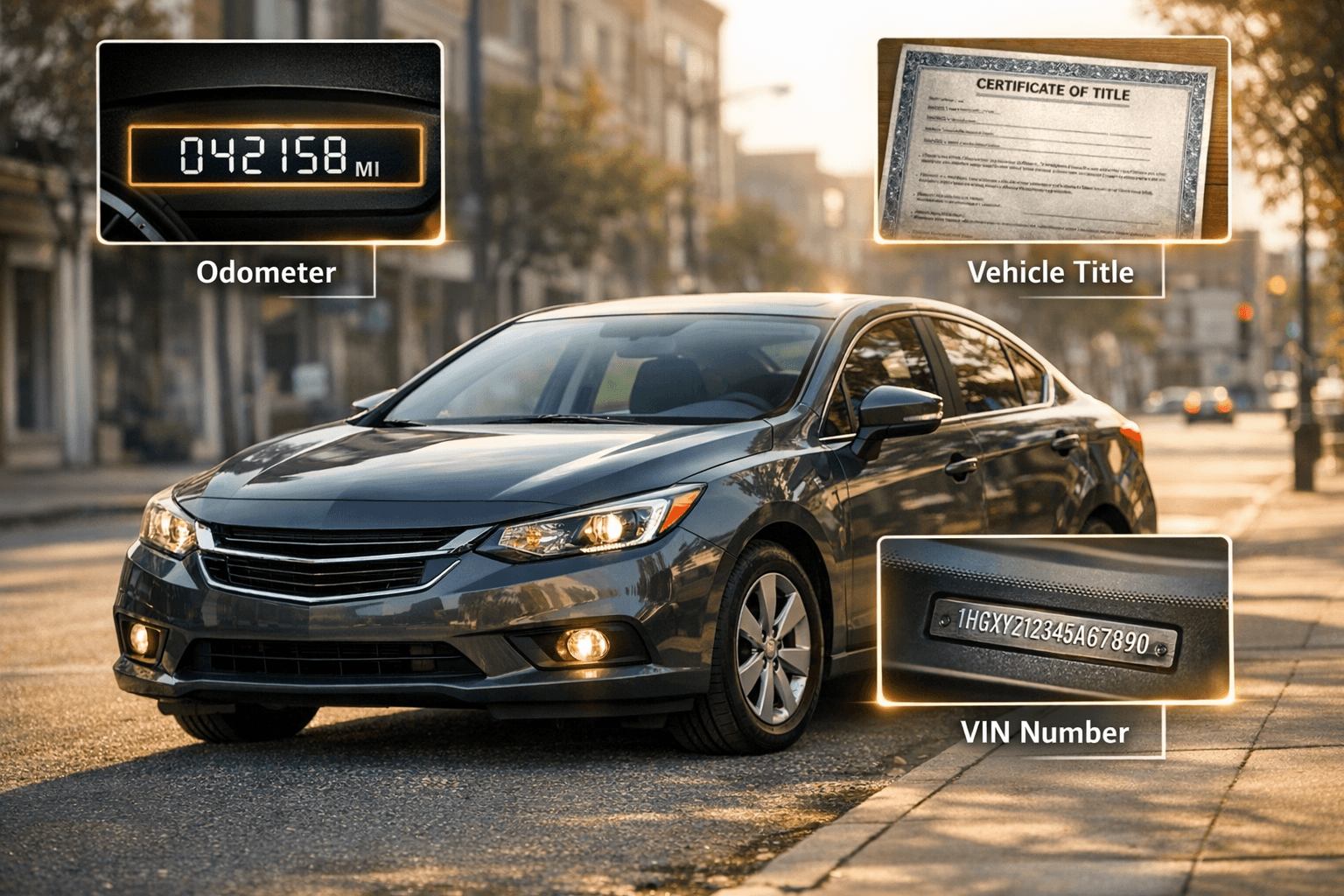 Spot red flags for odometer rollbacks, title washing, VIN cloning, curbstoning and fake listings — plus steps to verify VINs, titles, inspections, and loans.